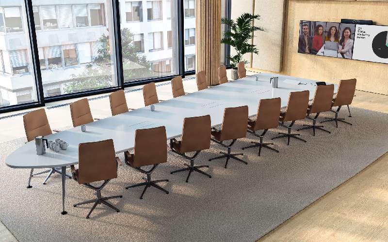 مهمترین عنصر مبلمان در اتاقهای جلسه، میز کنفرانس است. طراحی میز سالن کنفرانس باید بر اساس تعداد افراد، شکل اتاق و نحوه برگزاری جلسات انجام شود. میزهای بیضی، U شکل، مستطیلی و گرد هر کدام مزایا و کاربرد خاص خود را دارند. میزهای U شکل برای جلسات تعاملی با مشارکت بیشتر مناسب هستند، در حالی که میزهای گرد برای گفتگوهای صمیمیتر توصیه میشوند.