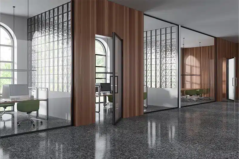 این پارتیشنها به دلیل ظاهری شفاف و مدرن، بسیار محبوب هستند. آنها به افزایش نور طبیعی در فضا کمک میکنند و احساس باز بودن فضا را حفظ میکنند. پارتیشنهای شیشهای میتوانند شفاف، مات یا نیمه مات باشند که هر کدام به نوعی بر حریم خصوصی تأثیر میگذارند.