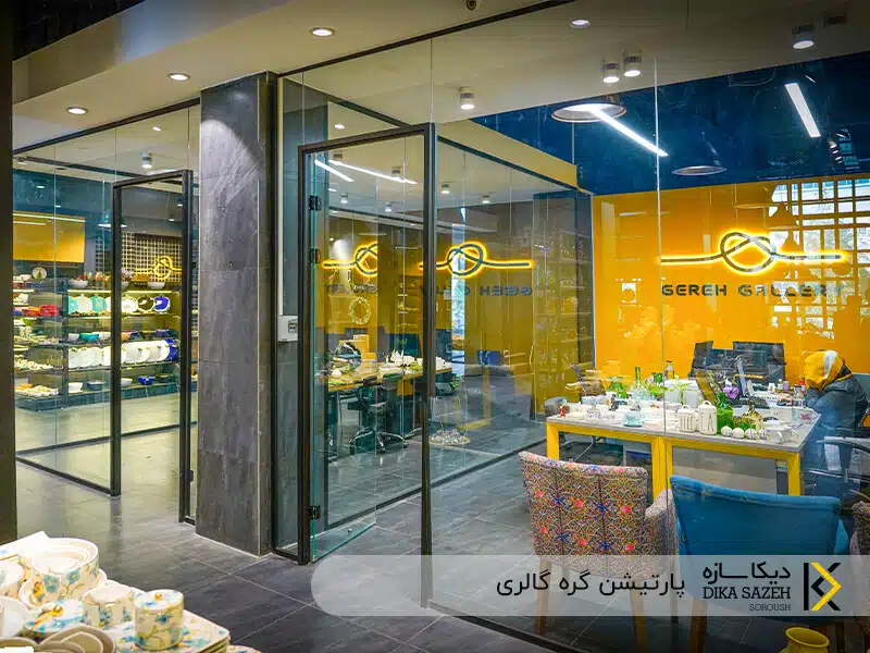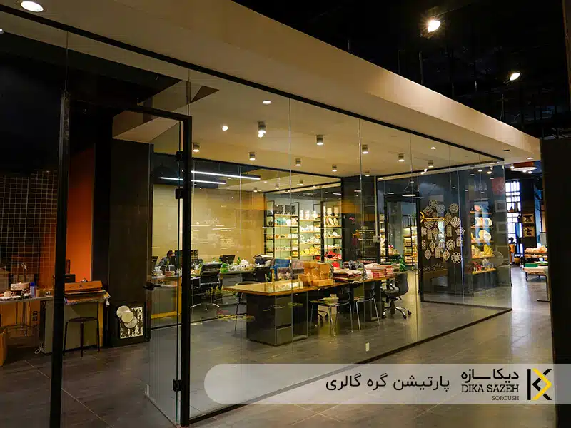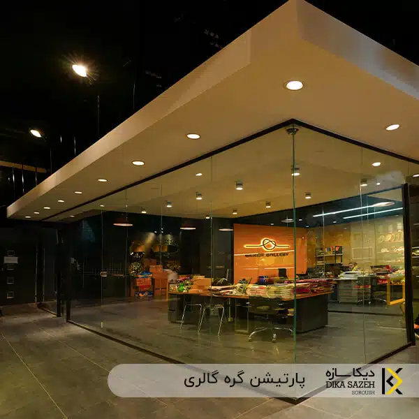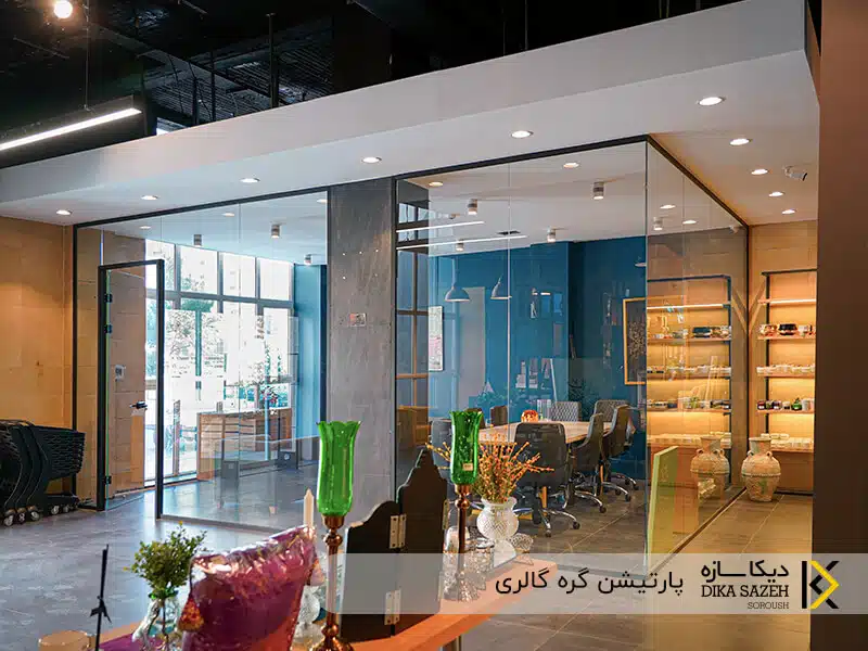 پارتیشن شیشه ای گره گالری | طراحی و اجرای پارتیشن اداری توسط شرکت دیکا سازه