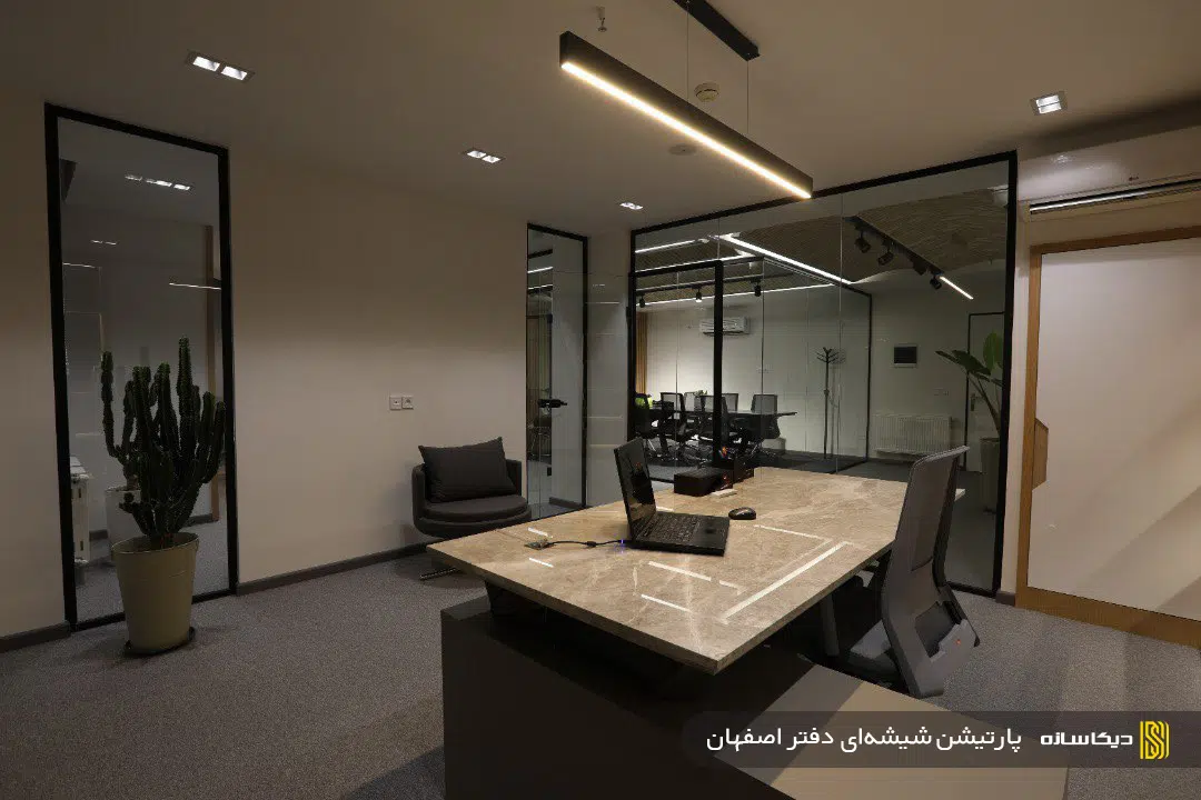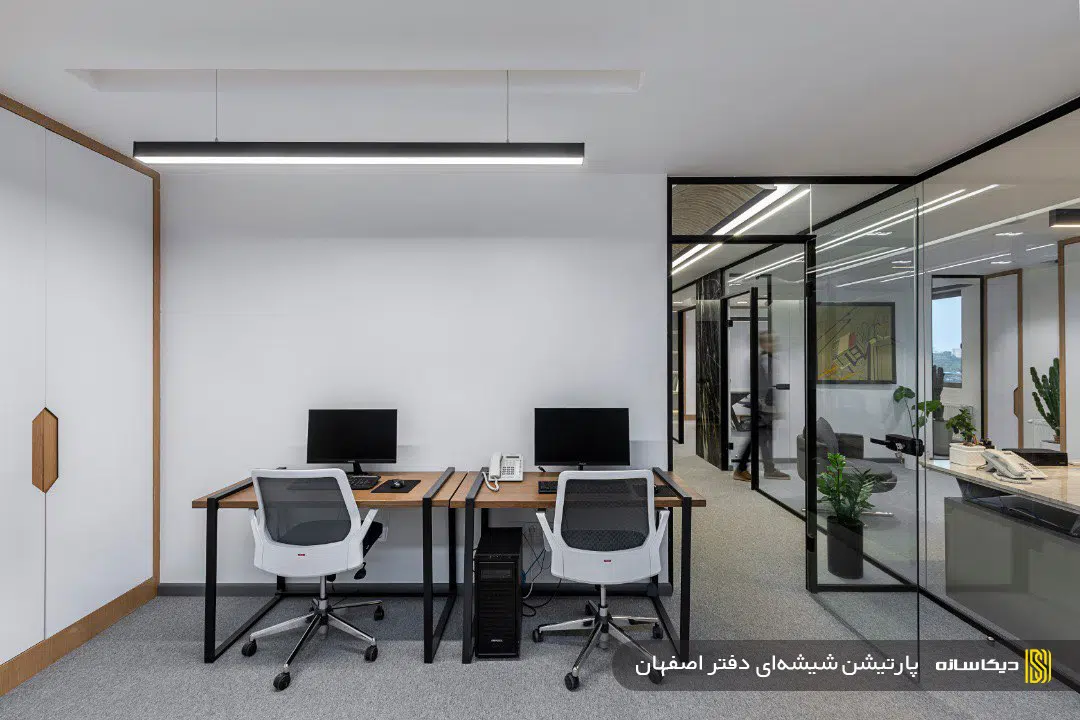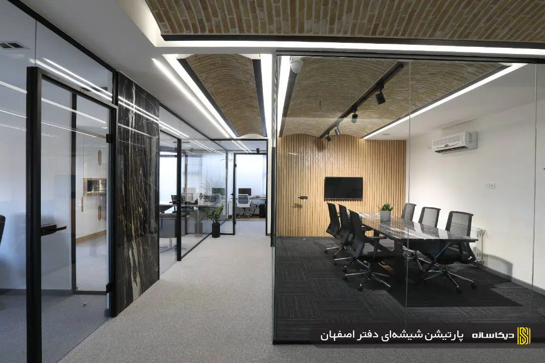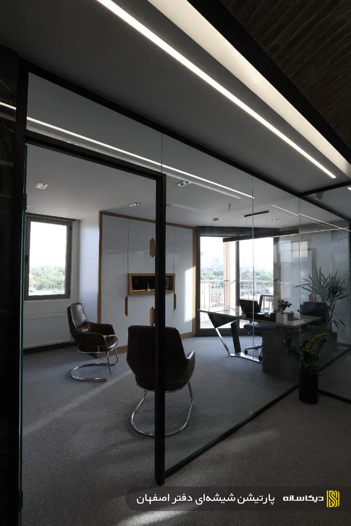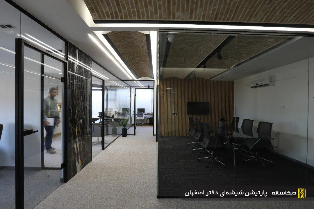 پارتیشن شیشه ای دفتر اصفهان | طراحی و اجرای پارتیشن اداری شیشه ای توسط شرکت دیکا سازه