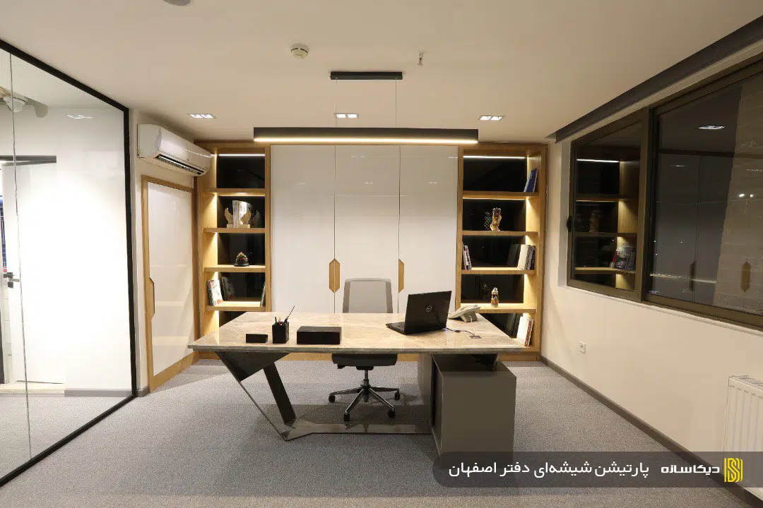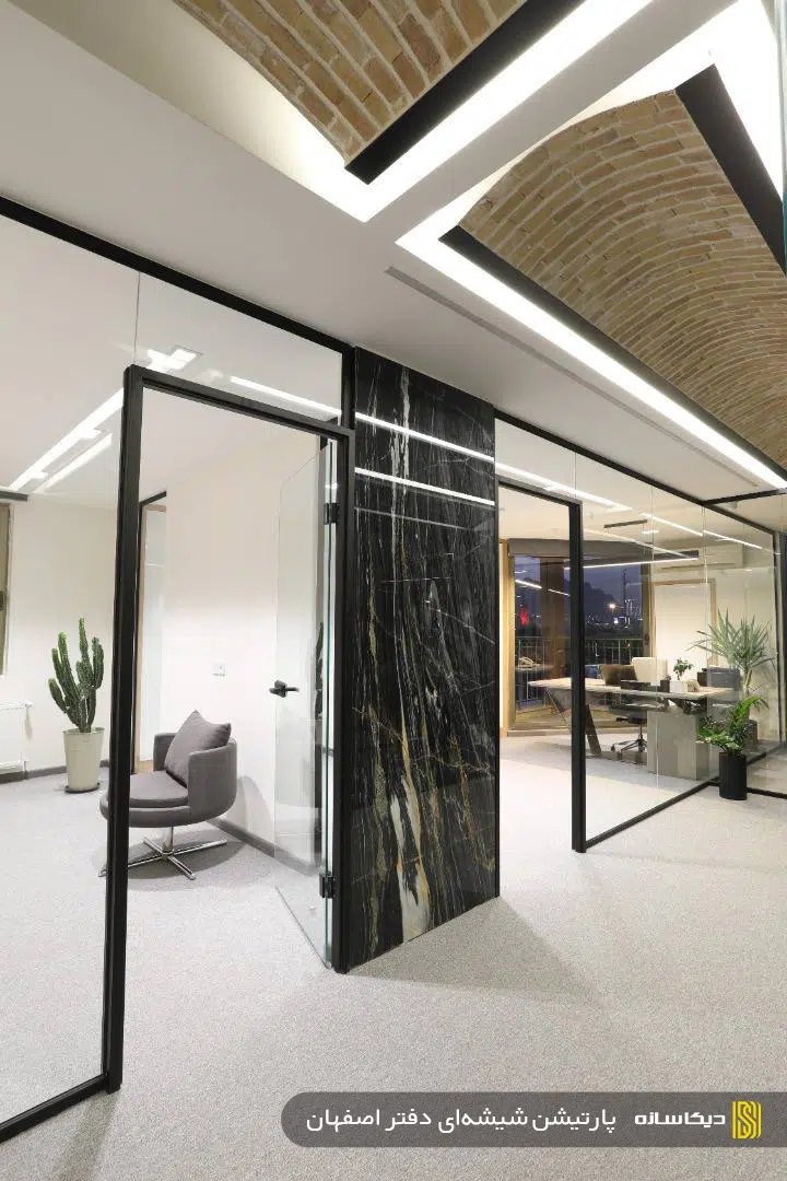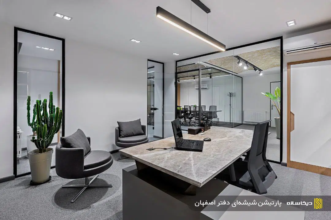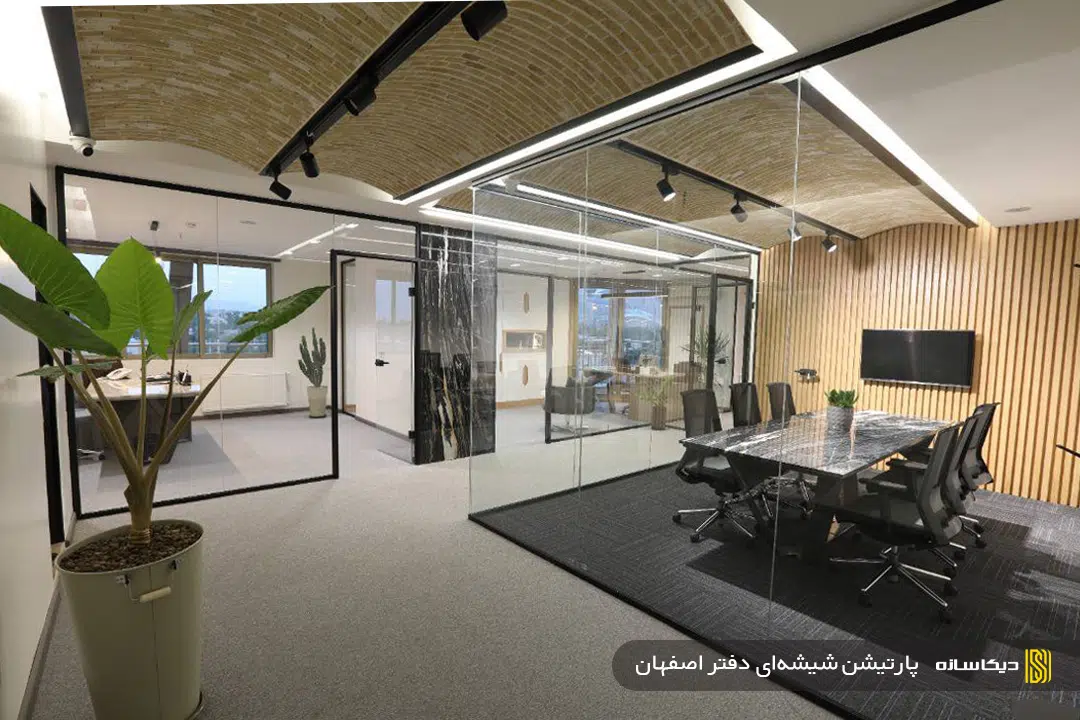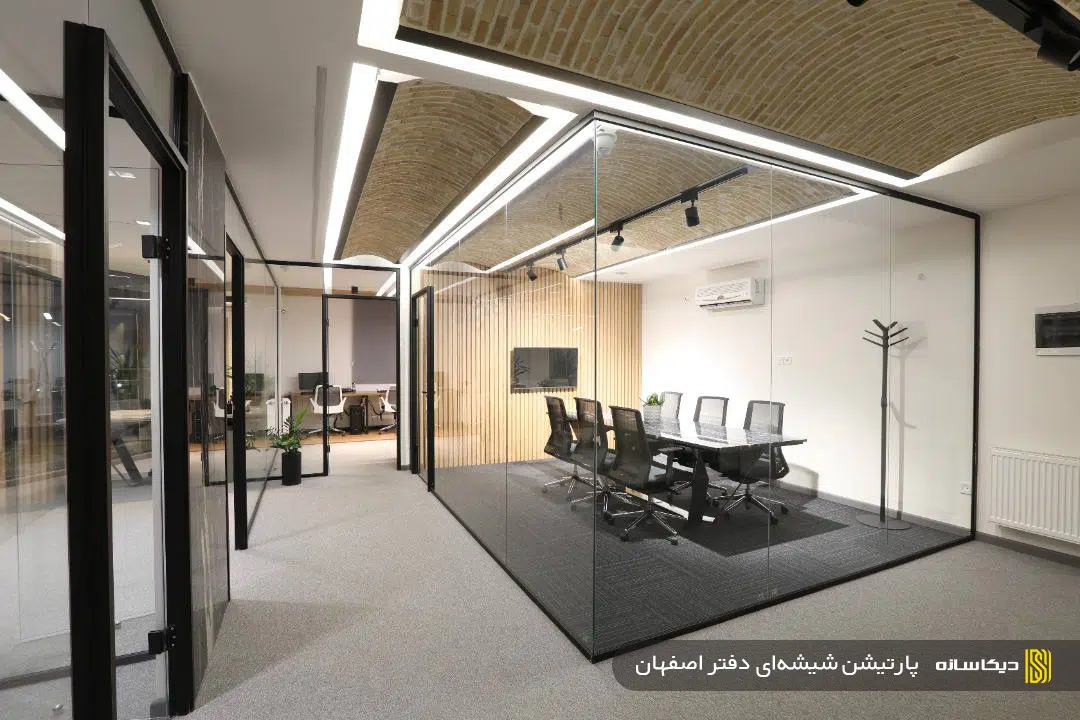 پارتیشن شیشه ای دفتر اصفهان | طراحی و اجرای پارتیشن اداری شیشه ای توسط شرکت دیکا سازه